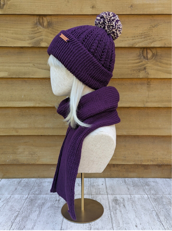 Purple Knitted Hat and Scarf