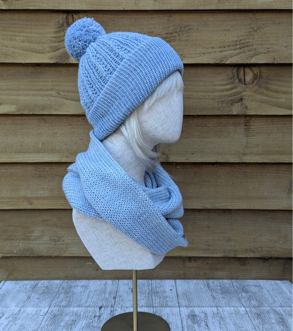 Sky Blue Knitted Hat and Snood