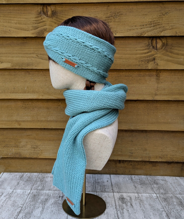 Duck Egg Blue Knitted Ear Warmer and Scarf
