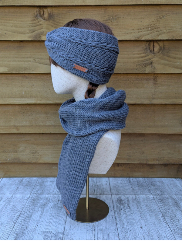 Granite Grey Knitted Ear Warmer and Scarf